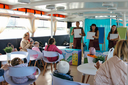 Дети до 14 лет допускаются на теплоход только в сопровождении взрослых (при наличии билета и у взрослого). Дети до 2 лет посещают спектакль бесплатно. В целях безопасности один взрослый должен сопровождать не более трех детей (данное правило не касается организованных групп).
